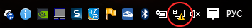 1. Переконайтеся, що мережевий кабель підключений до вашого комп'ютера, а в треї є індикатор стану підключення, поряд з ним повинен знаходитись жовтий значок попередження — мережевий кабель підключений, але підключенне не налаштоване; якщо поряд з індикатором з'явився червоний хрестик, значить мережевий кабель не підключений або пошкоджений.