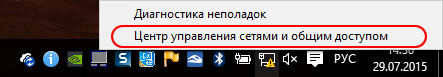 2. Натисніть правою кнопкою миші на індикаторі стану підключення і перейдіть в "Центр управления сетями и общим доступом".