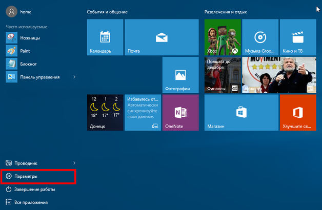 4.1 А) Відкрийте меню "Пуск", виберіть пункт "Параметры".