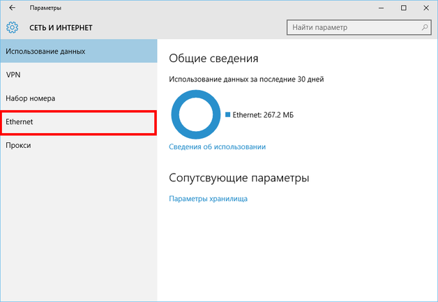 В) В розділі "Сеть и интернет" виберіть пункт "Ethernet".