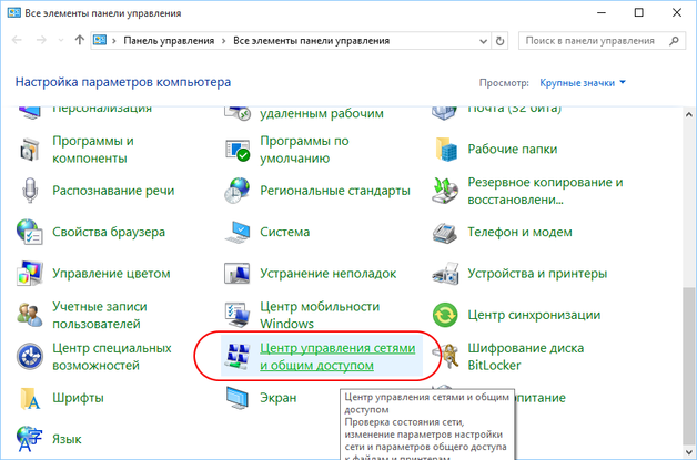 3. В розділі "Сеть и интернет" вибираємо пункт "Центр управления сетями и общим доступом".