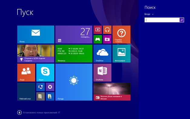 Б) Відкрийте "Начальный экран", в верхньому правому куті знаходимо "Поиск".