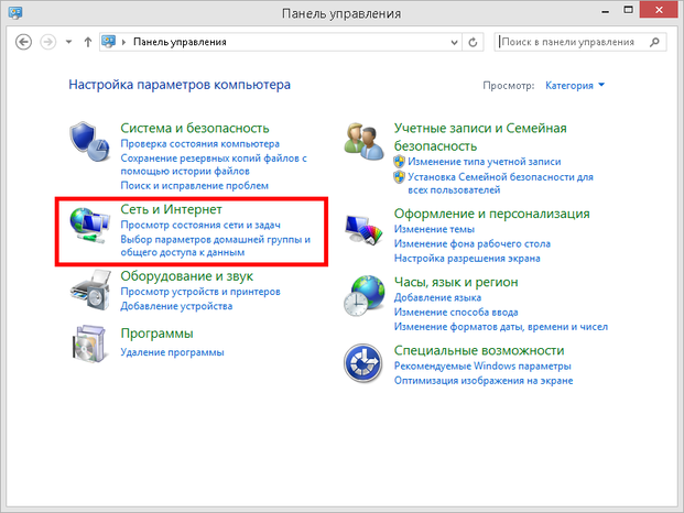 2. В "Панели управления" вам слід знайти розділ "Сеть и интернет"