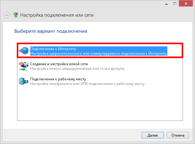 5. В наступному віконці виберіть "Подключение к интернету", натисніть внизу "Далее".