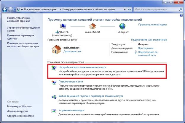 4. Вибираємо пункт "Настройка нового подключения или сети"